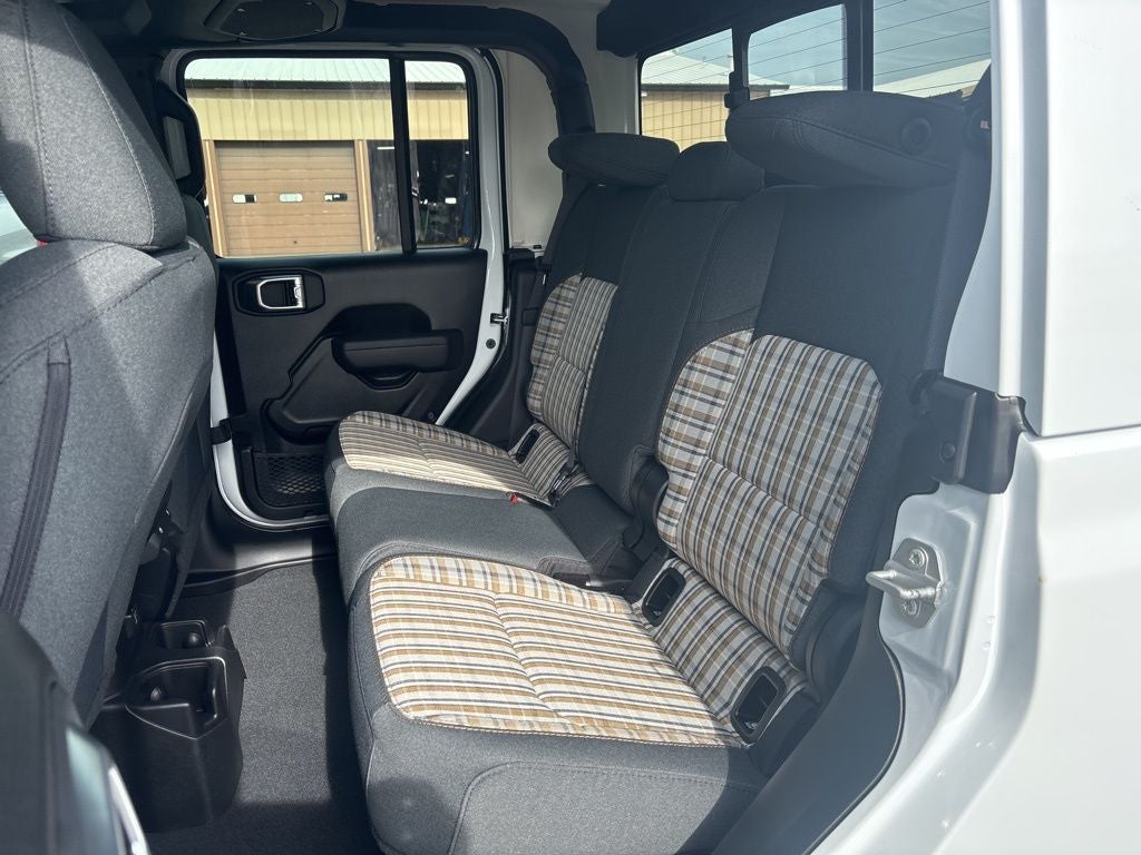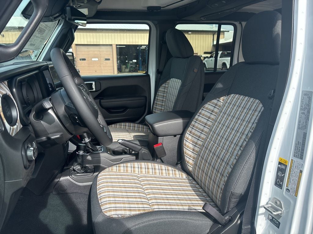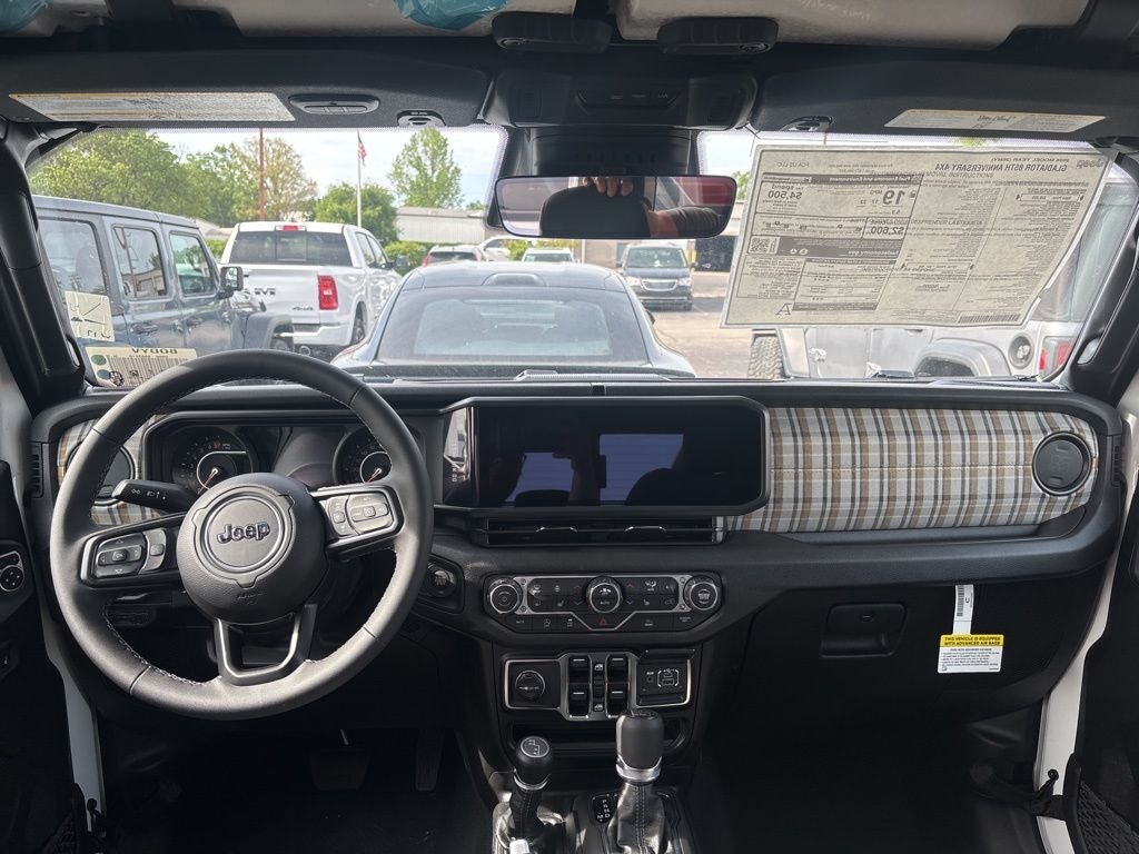 The exterior of the 85th Anniversary Gladiator exudes rugged sophistication, featuring a striking white/off-white color scheme, body-color fender flares, and distinctive 85th anniversary badging. Step inside and you'll be greeted by premium Mayan Gold interior accents, a plaid-wrapped mid-bolster, and a 12.3-inch touchscreen display that puts cutting-edge technology at your fingertips.