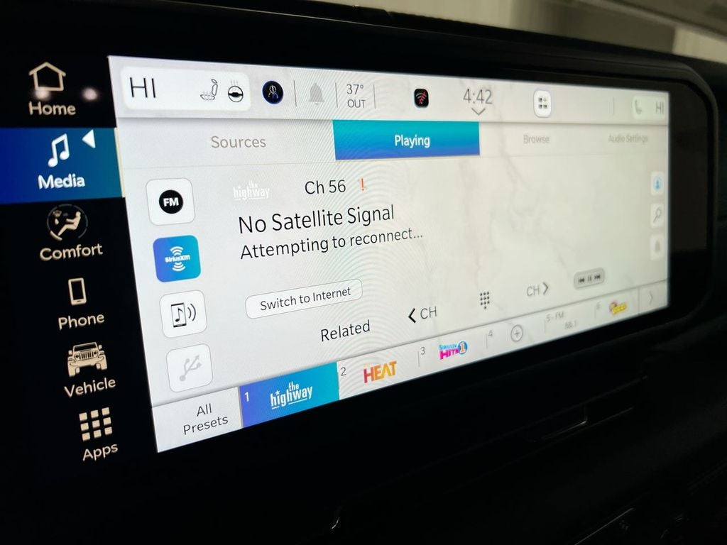 - Radio w/Seek-Scan, Clock, Speed Compensated Volume Control, Aux Audio Input Jack, Steering Wheel Controls, Voice Activation, Radio Data System and Uconnect External Memory Control