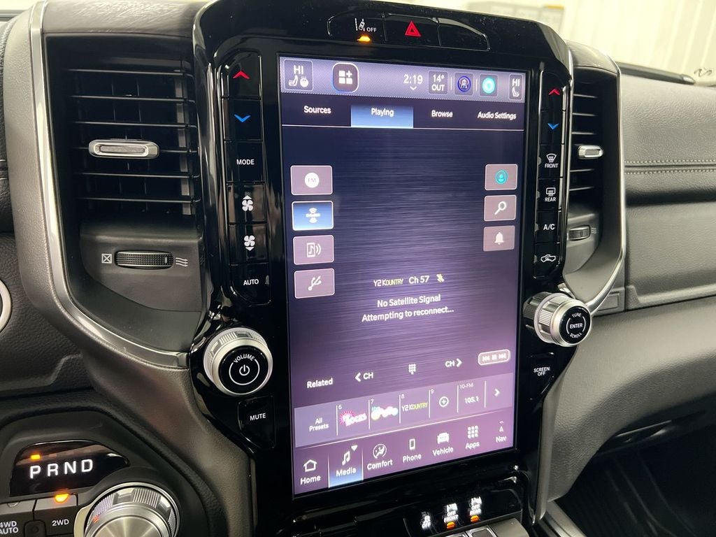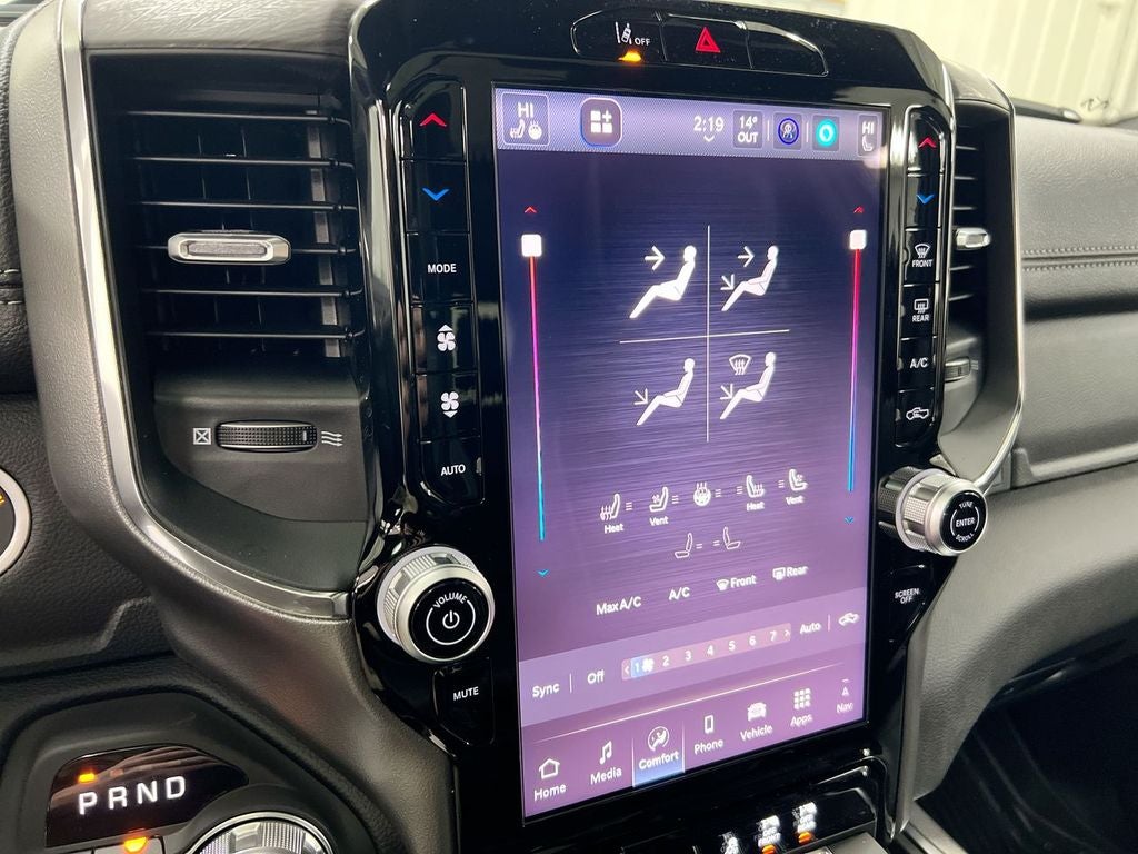 Step inside the Laramie and experience the epitome of luxury and technology. The spacious cabin is outfitted with premium leather-trimmed seats, heated and ventilated up front, and a dual-pane panoramic sunroof that floods the interior with natural light. The Uconnect 5 Navigation system with a 12-inch display keeps you connected and informed, while the premium audio system with 10 speakers delivers a concert-hall experience.