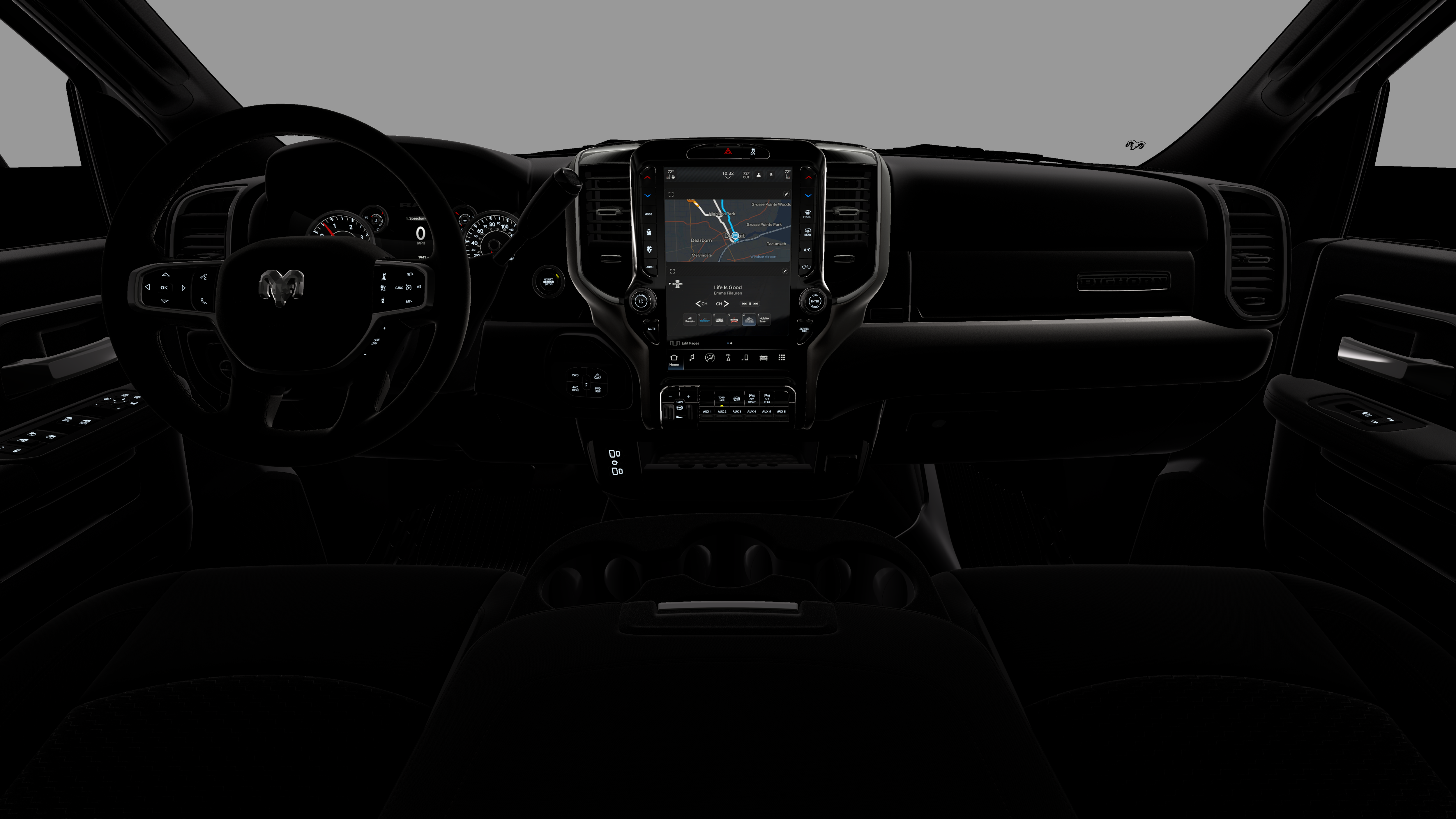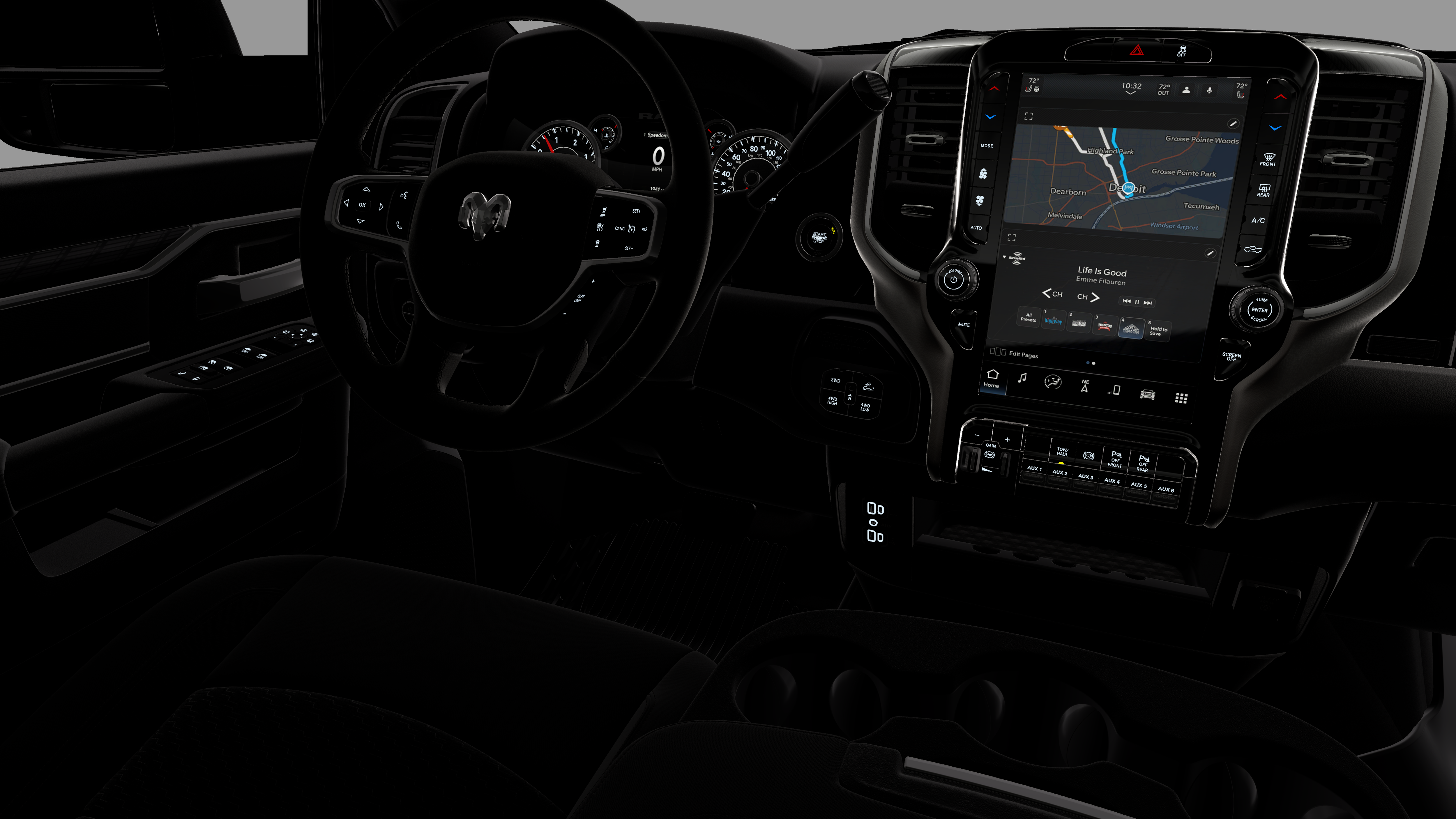 - Radio w/Seek-Scan, Clock, Speed Compensated Volume Control, Aux Audio Input Jack, Voice Activation, Radio Data System and Uconnect External Memory Control