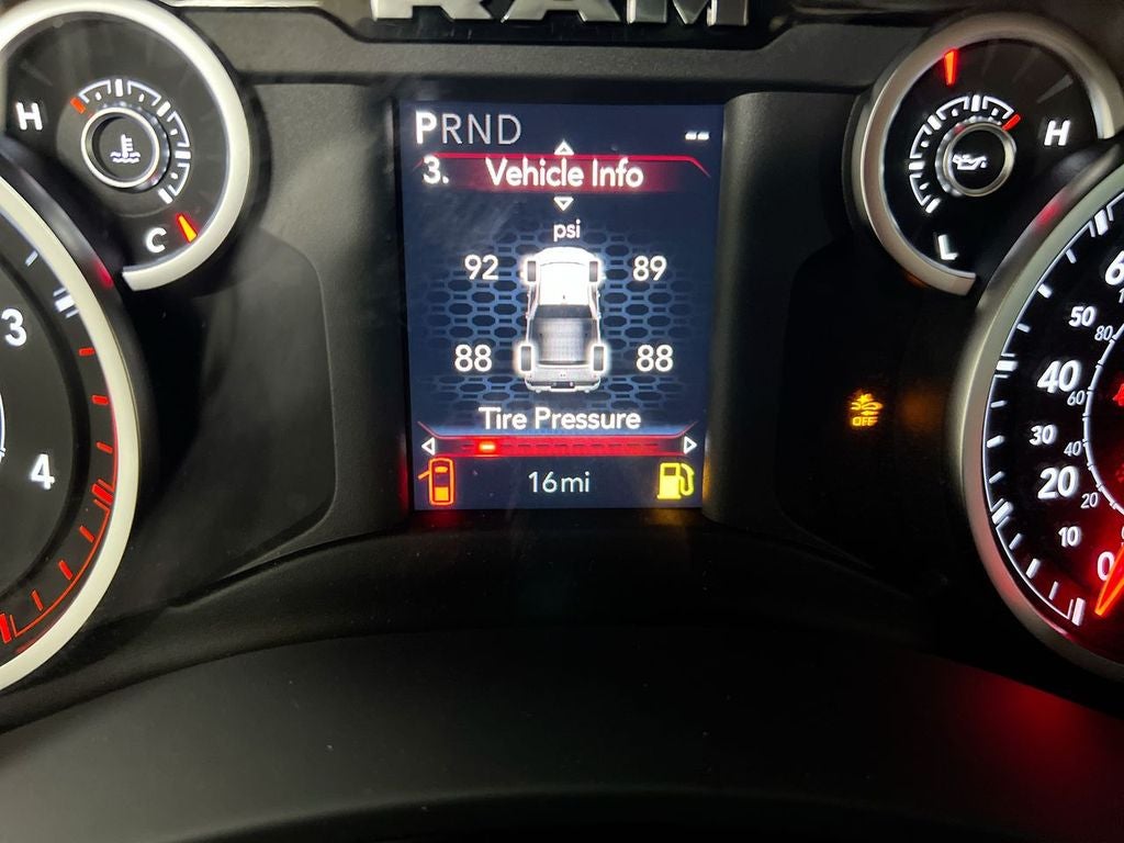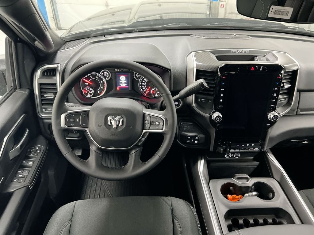 For your comfort, the Big Horn offers dual-zone climate control, a heated steering wheel, and premium cloth seats with power-adjustable lumbar support. The off-road capabilities are enhanced with features like hill descent control, an anti-spin differential rear axle, and a MOPAR spray-in bedliner.