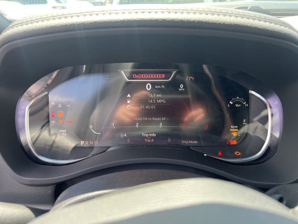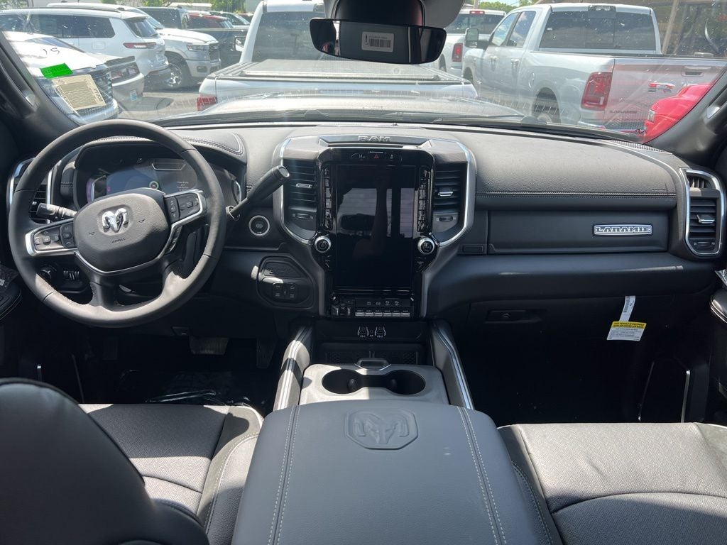 - Luxurious Laramie interior with premium leather-trimmed seats, heated and ventilated front seats, and a 12-inch Uconnect 5 Navigation display