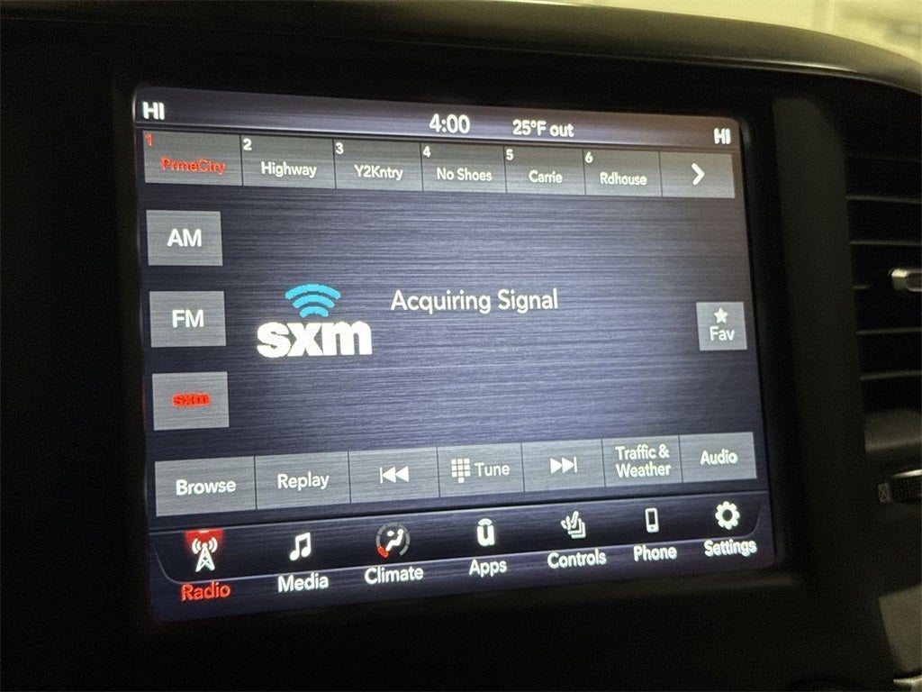 115V Auxiliary Power Outlet, 115V Auxiliary Rear Power Outlet, 2 USB Full Function/Charge Only Media Hub, 3.21 Rear Axle Ratio, 4 Adjustable Cargo Tie-Down Hooks, 4-Wheel Disc Brakes, 400W Inverter, 6 Speakers, 8.4 Touchscreen Display, Air Conditioning ATC w/Dual Zone Control, Auto-Dimming Rear-View Mirror, Bed Utility Group, Big Horn IP Badge, Big Horn Level 2 Equipment Group, Class IV Receiver Hitch, Cluster 7.0 TFT Color Display, Dampened Tailgate, Dual front side impact airbags, Foam Bottle Insert (Door Trim Panel), Glove Box Lamp, GPS Antenna Input, Heated door mirrors, Heated Front Seats, Heated Steering Wheel, Integrated Center Stack Radio, ParkSense Front/Rear Park Assist w/Stop, Pick-Up Box Lighting, Power 4-Way Driver Lumbar Adjust, Power 8-Way Driver Seat, Power Adjustable Pedals, Power Heated Fold Away Mirrors, Quick Order Package 25Z Big Horn/Lone Star, Radio: Uconnect 4 w/8.4 Display, Rear Dome w/On/Off Switch Lamp, Rear Power Sliding Window, Rear Window Defroster, Remote Start System, Security Alarm, Single Disc Remote CD Player, SiriusXM Satellite Radio, Spray In Bedliner, Steering Wheel Mounted Audio Controls, Sun Visors w/Illuminated Vanity Mirrors, Traction control, Universal Garage Door Opener.