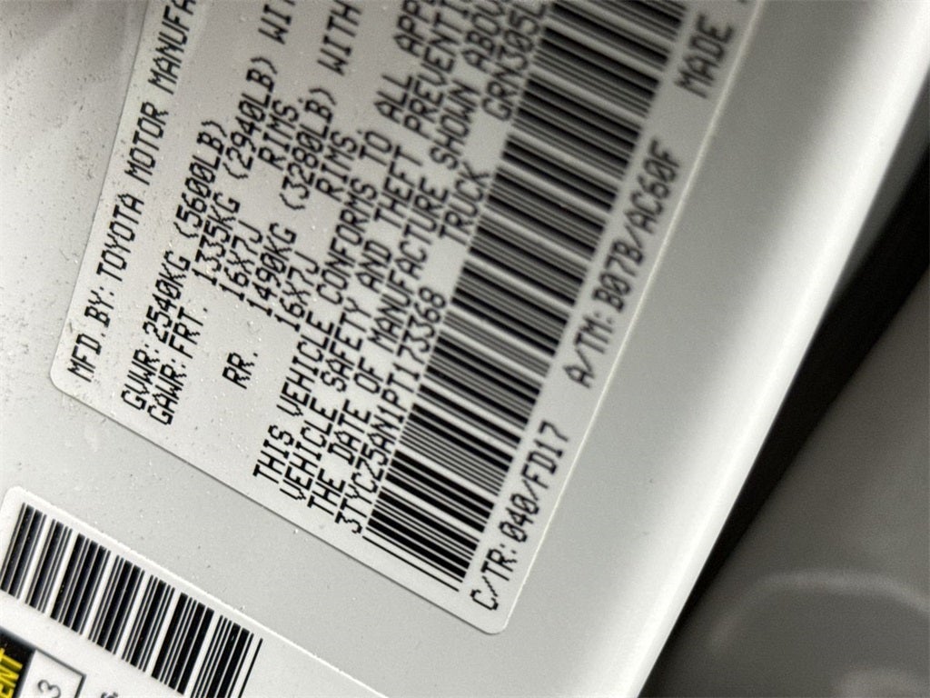 - Vehicle Name: Toyota Tacoma 4WD