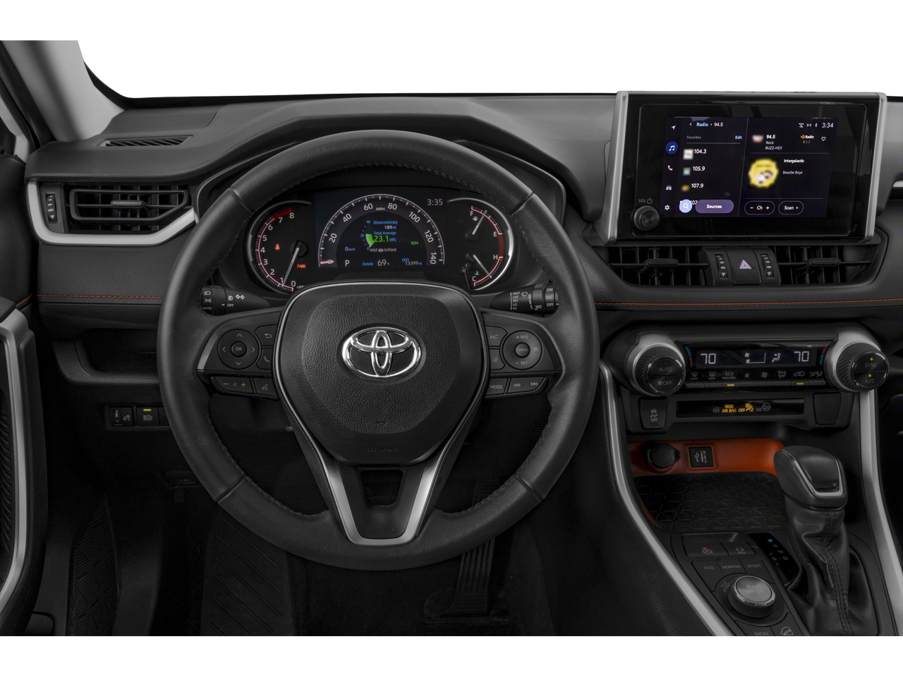 The RAV4 Adventure's bold exterior makes a statement with its black exterior, sleek roof rails, and sculpted body lines. Step inside the spacious cabin and you'll be surrounded by premium SofTex-trimmed seats, dual-zone climate control, and a premium audio system with SiriusXM. Stay connected with the intuitive infotainment system and enjoy the convenience of push-button start, remote keyless entry, and steering wheel-mounted controls.