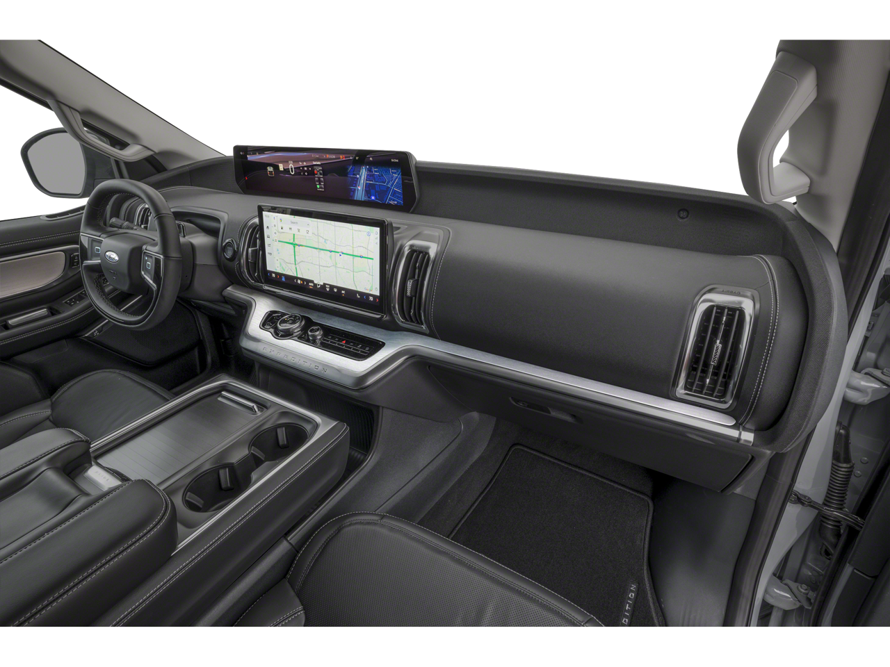 The Expedition Max's premium Platinum trim level elevates the experience with a host of luxurious features. Sink into the heated and ventilated leather front captain's chairs and enjoy the convenience of power-folding second-row seats. The Vista Roof fills the cabin with natural light, while the state-of-the-art B&O sound system provides an immersive audio experience.